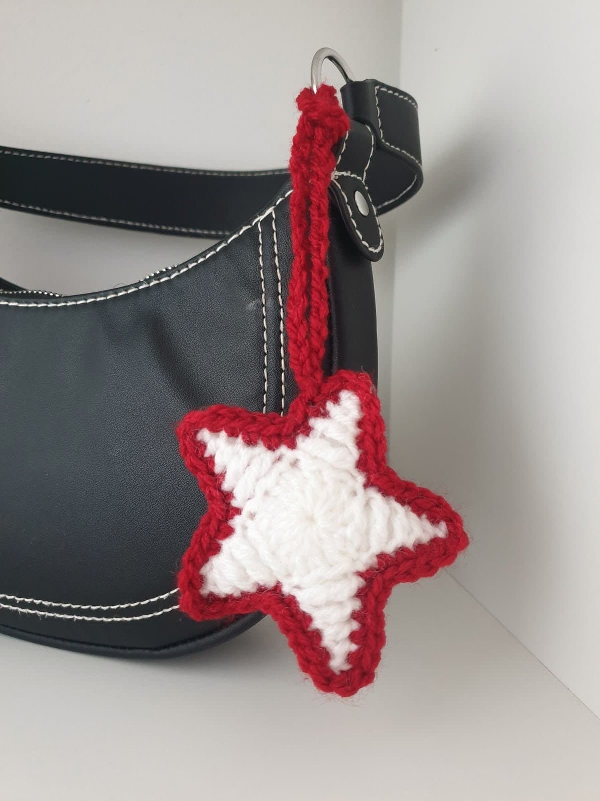 ميدالية (تعليقة) على شكل نجمة أو قلب محبوكة يدوياً بالكروشيه مصنوعة بكل حب و إخلاص